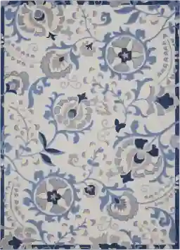 This rug is crafted from 100% polypropylene, a high-performance synthetic fiber widely regarded as the gold standard for indoor/outdoor textiles. Polypropylene is inherently non-absorbent, making it exceptionally resistant to moisture, mold, and mildew. It is also UV-stabilized to resist fading in direct sunlight, ensuring that the contemporary blue and gray floral pattern remains vibrant even on an uncovered patio or in a sunny sunroom.