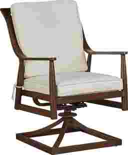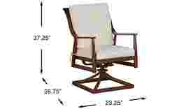 The Jorgen swivel rocker chair adds a comfortable element to your outdoor mealtimes. Crafted with low maintenance aluminum in a bronze finish, an angular frame and woven wicker panel back add a stylish look to your backyard. Solution-dyed performance fabric in a neutral vanilla color is durable and comfortable, while the swivel mechanism adds versatility to your seating arrangement. High performance acrylic fabric.