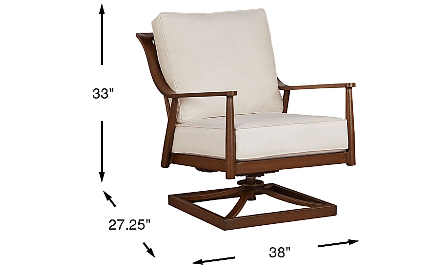 Get cozy in your outdoor space with the versatile Jorgen swivel chair. Crafted with low maintenance aluminum in a bronze finish, an angular frame and woven wicker back add a stylish look to your backyard. Solution-dyed performance fabric in a neutral vanilla color is durable and comfortable, while the swivel mechanism adds versatility to your seating arrangement. The compact size fits your space perfectly so you can sit back and relax in both small and large spaces. High performance acrylic fabric.
