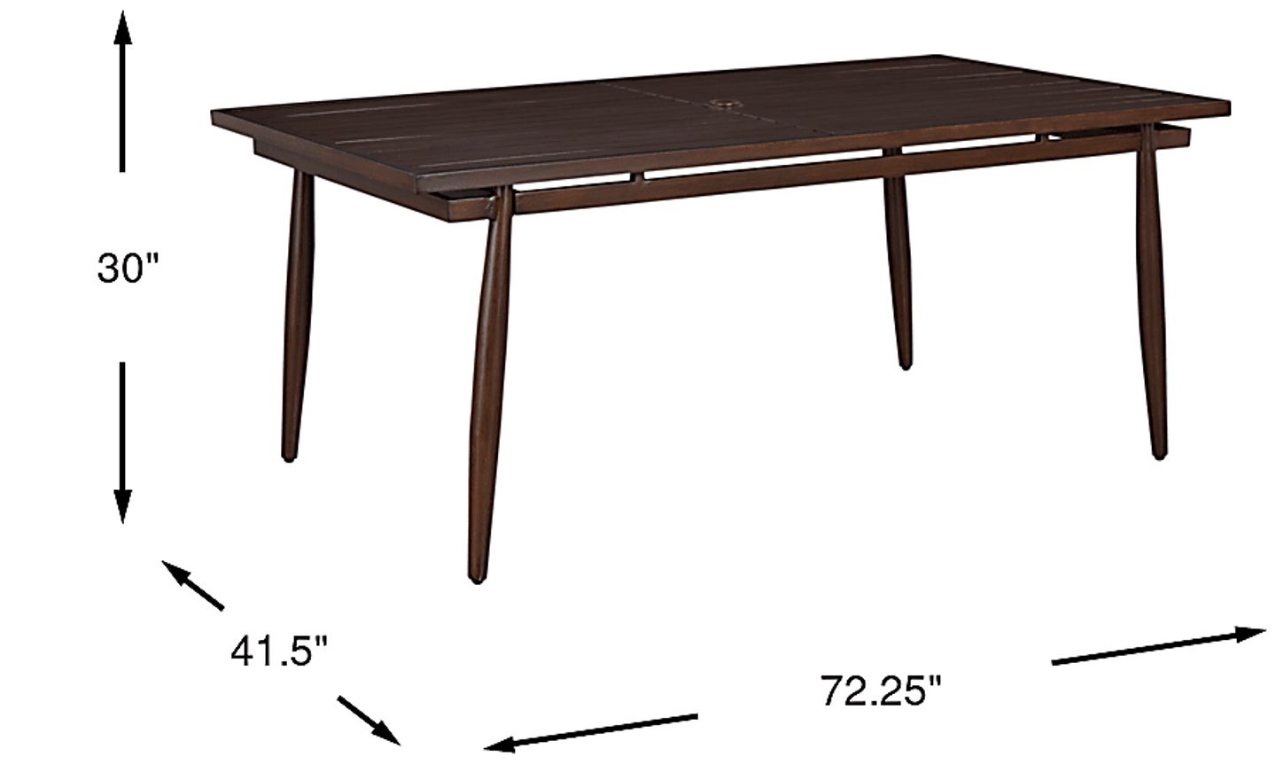 The Jorgen dining table has a sleek silhouette with clean lines, making it easy to entertain in style on your patio. Making meals easy, the spacious 72 in. top can effortlessly accommodate anything from a cozy family brunch, to a fancy dinner party with friends. Crafted with low maintenance aluminum in a bronze finish, you'll love the versatile style that blends into many types of outdoor dcor.