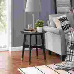 Bring timeless form and organic shapes home with this round Jorine end table. A spacious tabletop displays board games or glorious floral arrangements, while simple silhouette and retro footprint highlight midcentury chic. A black finish gives depth and versatility to your existing living room collection, or becomes the envy of your home office. Style resides with you and this retro-inspired accent table. Customer assembly is required. Customer assembly is required.