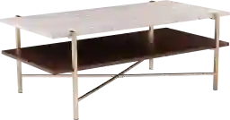 Take your decor up a notch with this two-tier Journeyville cocktail table. Featuring a chic, faux marble top and slim metal legs, this rectangular coffee table livens up your living room design. Delicate crossbars intersect underneath a spacious shelf, adding traditional flair in a modern finish. Display potted plants or family photos across the wide tabletop, while blankets and board games get tucked away on the open shelf. However you use this coffee table with storage,sleek style is close at hand. Customer assembly is required.