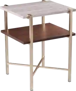 Top off your living look with this two-tier Journeyville accent table. Featuring a spacious faux marble top and open display shelf, this storage end table shows off your reading list, family photos, or flower bouquets. A traditional silhouette and modern finish cross paths over the X-shaped frame, blending old and new in this mixed-material side table. For storage and style in one, have this square end table rub elbows with your favorite sofa,or add to your open concept space for a multifunctional tabletop that fits in anywhere. Customer assembly is required.