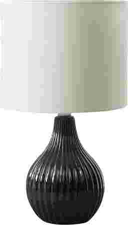 Step into a world of stylish sophistication with the Joygold Black Lamp. Perfectly designed to accentuate any decor, this contemporary masterpiece effortlessly blends function and flair. Crafted from a lustrous ceramic base with a textured finish in a ribbed design curving with the tear drop shape, this lamp is not just a source of lighting, but a statement piece that radiates ambiance throughout your home. Adorned with an ivory fabric shade, this lamp brings a warm glow to your office, living room, or bedroom. Partial assembly may be required.