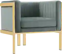 Lounge in 1920s luxury. The Judlee gray accent chair is a modern, assertive take on the classic Art Deco style. An open architectural frame in polished brass wraps around the plush velvet seat, creating an inviting combination of simplicity and luxury. The seats backrest is accented with vertical stitching to complement its geometric frame. The symmetrical, streamlined look will add an evocative touch of distinguished glamour to any space.
