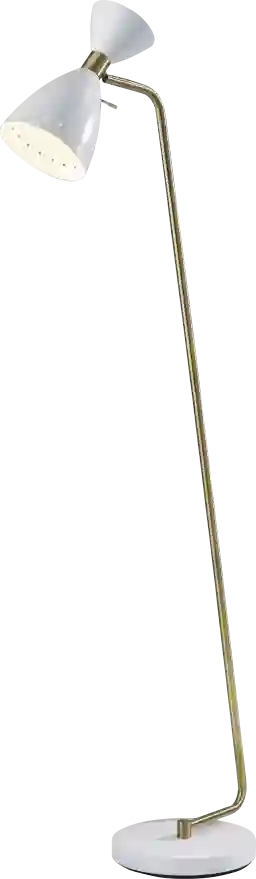 Add some mid-century flare to your office space or bedroom with the Jules Drive white floor lamp. An adjustable over-sized lamp shade provides light where it is needed while putting a modern spin on your dcor. White and antique brass finishes are mixed to create the quintessential mid-century style. Partial assembly may be required.