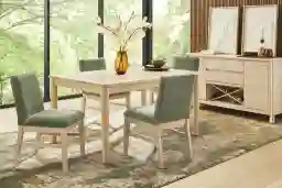 Julian Natural 5 Pc Dining Room with Green Upholstered Chairs