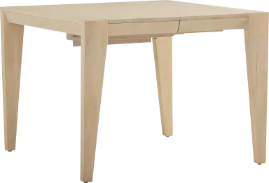 From serene quiet mornings to calm yet lively gatherings, the Julian collection embodies a dining space grounded in balance, beauty and effortless versatility. Contemporary in style, this square dining table comes in a light natural finish and rests on sleek spindled legs for a light, airy design. The 18-inch leaf extends the tabletop from 40 to 58 inches, so you can enjoy more space for larger table spreads.