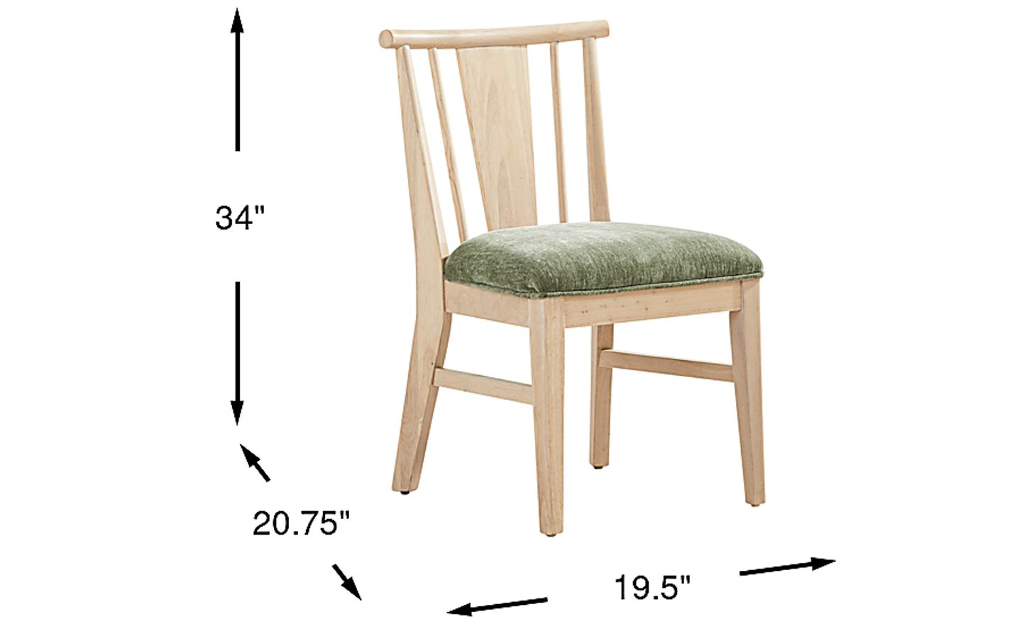 This side chair measures 19.5"W x 20.75"D x 34"H, with a standard seat height of 18 inches. This height is designed to pair perfectly with most standard dining tables (typically 28-30 inches tall), providing the ideal 10-12 inch gap for comfortable legroom and ergonomic posture during meals.