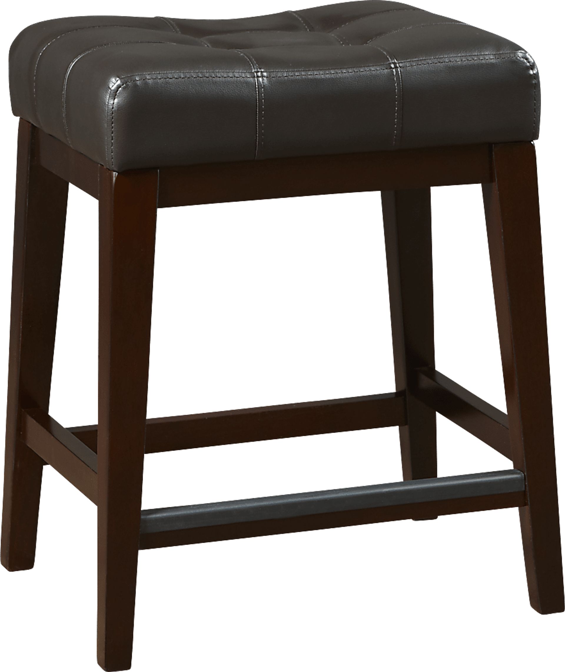 The Julian Place stool is influenced by classic Asian antiques, but it's firmly grounded in today's transitional style. Its padded, tufted dark brown UltraHyde seat provides comfort along with a nice complement to the stool's chocolate finished legs. A shielded footrest provides support and protection from scuff marks.