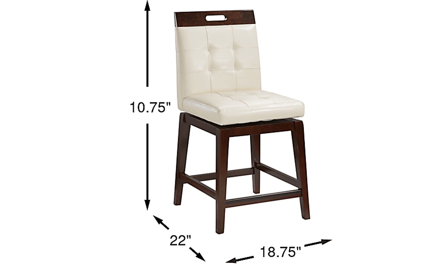 Handsome design and rich, deep tones make the Julian Place barstool a welcome addition to almost any table or counter area. The swivel seat is comfortably appointed with vanilla tufted UltraHyde upholstery supported by sturdy legs made with wood solids in a rich chocolate finish. Stretchers between the stool's legs add a sturdy component as does the protected footrest that prevents scuff marks.
