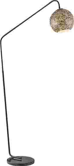 Transform your living room with the Julian Sea Gray Floor Lamp, adorned with brass accents, striking a perfect balance between minimalism and mid-century modern aesthetics. Its alluring angular arc arm and heavy marble base adds both style and functionality, extending gracefully over seating areas or your favorite armchair. The meticulously handcrafted inner silver-foil art glass dome shade serves as its centerpiece, infusing your space with artistic allure. This lamp's convenience is unmatched, featuring an on-off foot switch for effortless control. Partial assembly may be required.