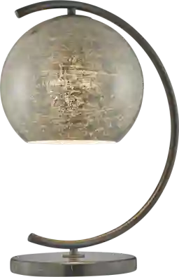 Elevate your workspace with the Julian Sea Gray Lamp where fine art seamlessly blends with functional design. The lamp boasts an elegant arch silhouette constructed from a sleek black finish metal body anchored by a substantial marble base. Its crowning glory is a hand-made inner silver-foil art glass dome shade, adding a touch of artistic flair. For your convenience, an easily accessible on/off in-line switch makes operating this lamp a breeze. Illuminate your desk with style and sophistication, where form meets function in perfect harmony. Partial assembly may be required.