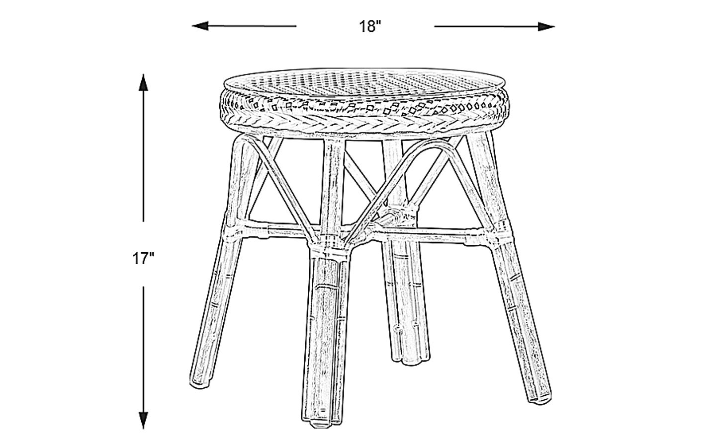 Add stylish extra surface space with the Juliette side table. This charming piece, inspired by cafes found throughout France, is made with durable aluminum and blue vinyl wicker. The 18 inch round top features smooth glass while the base is hand-painted in a natural finish to look like real rattan.
