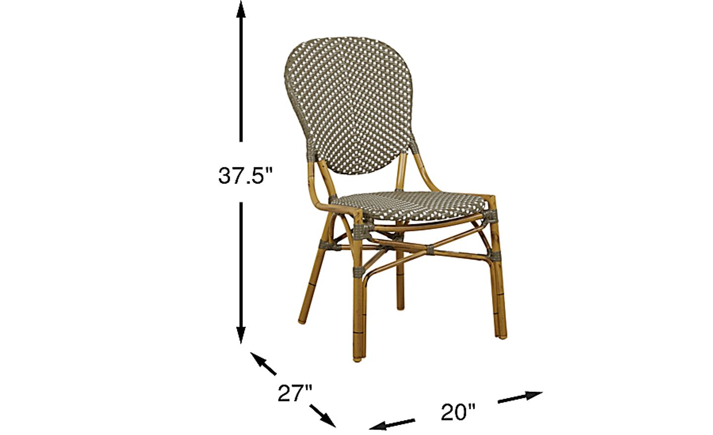 Make your staycation more like a French vacation with the Parisian inspired Juliette side chair. This casual chic seating is crafted with durable aluminum and gray vinyl wicker. The frame and legs are hand-painted in a natural finish to look like real rattan.