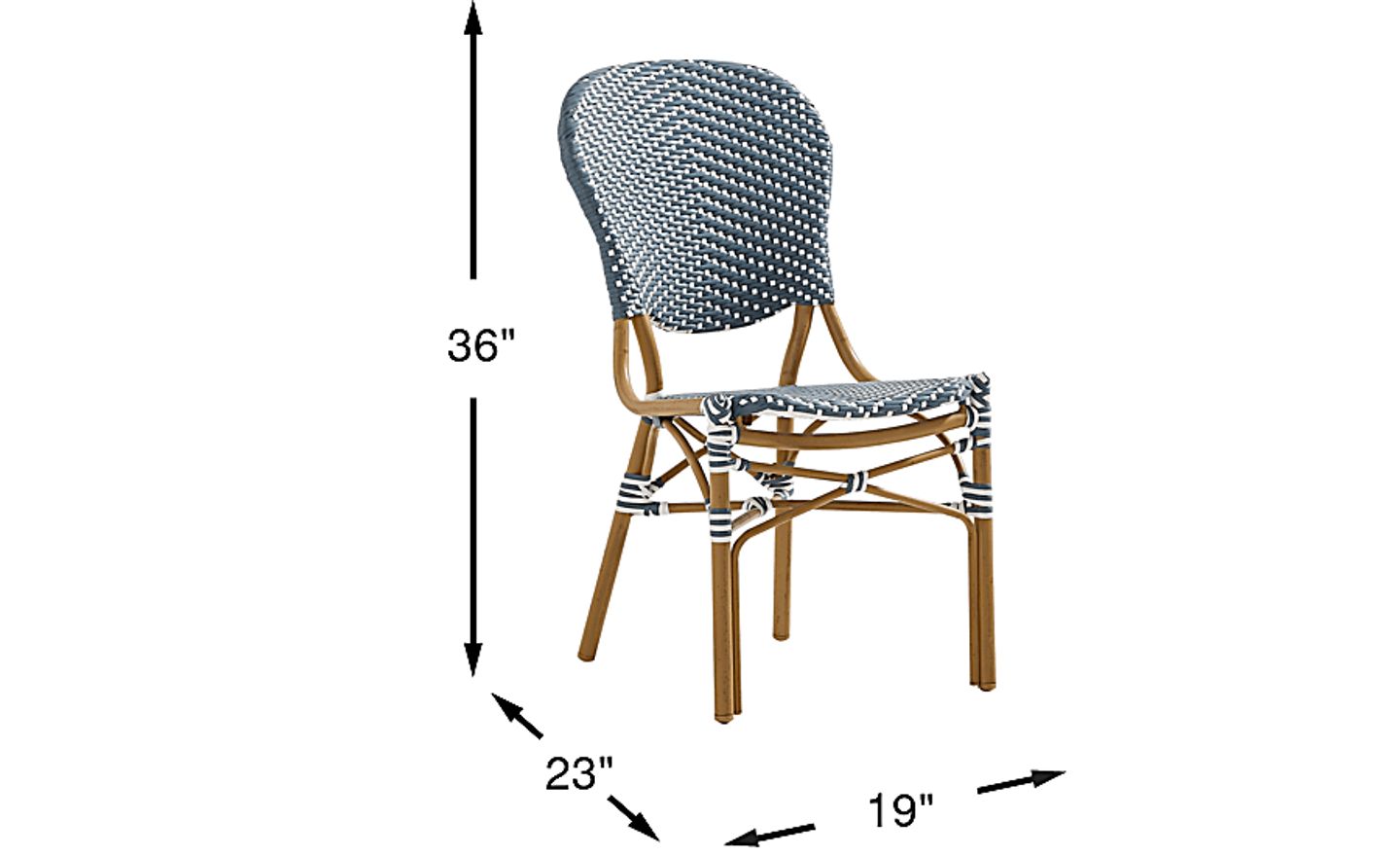 Time in the outdoors adopts a nostalgic tinge with the Juliette II dining collection's familiar forms and delightful coastal details enticing diners to hit the deck and enjoy the fresh air. This side chair in navy blue rattan features a high, rounded back and a frame crafted of rust-resistant aluminum in a natural color with the look of rattan cane.
