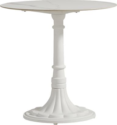 Time in the outdoors adopts a nostalgic tinge with the Juliette II dining collection's familiar forms and delightful coastal details enticing diners to hit the deck and enjoy the fresh air. This 30" round table in white features a graceful scalloped pedestal base completed with a sintered stone top in a marble white color.