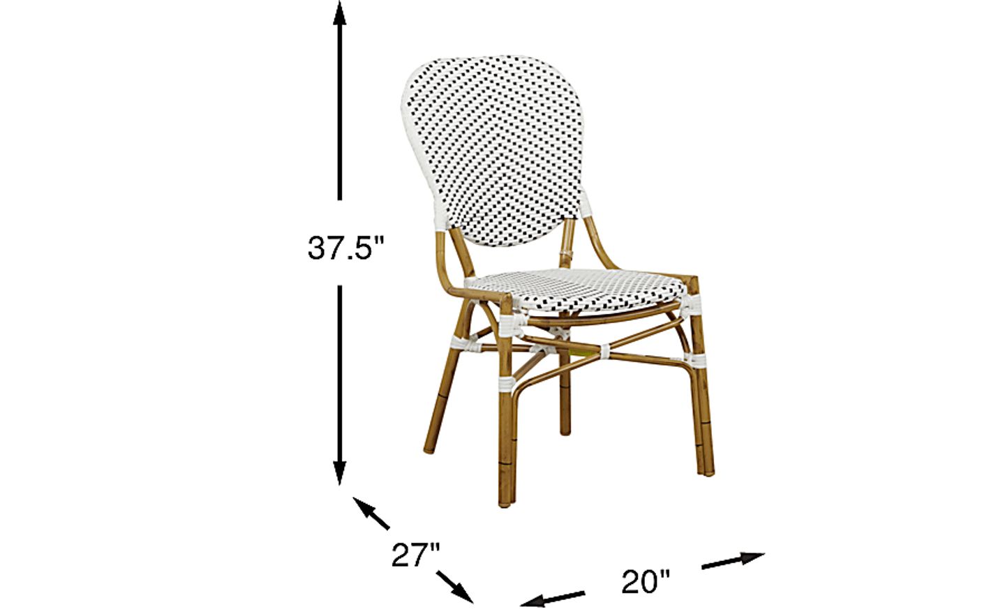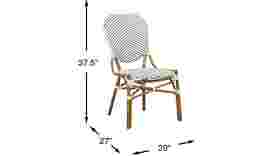 Make your staycation more like a French vacation with the Parisian inspired Juliette side chair. This casual chic seating is crafted with durable aluminum and white vinyl wicker. The frame and legs are hand-painted in a natural finish to look like real rattan.