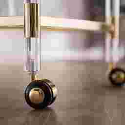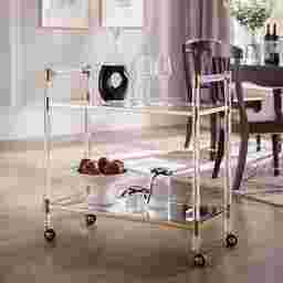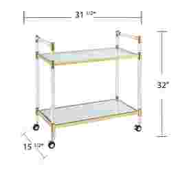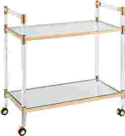 Get a handle on entertainment necessities with this Julow coffee cart. Coast into festivities by placing this bar cart in your open concept living space. See to your guest's needs by adorning this snack cart with appetizers in the kitchen. Glass and acrylic body blend with the atmosphere, while polished gold accents and mirrored bottom shelf shine. An exquisite accent item, this glam style tea cart nestles into your living room reading corner. Customer assembly is required. Customer assembly is required.
