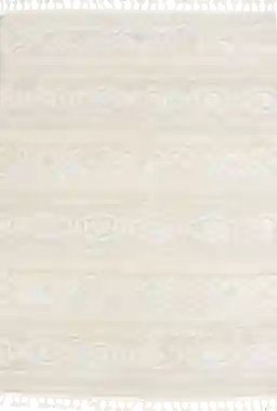 This rug is specifically crafted to evoke a coastal retreat. Its transitional style features a rhythmic, geometric wave pattern that mimics the movement of the sea. The neutral white and tan color palette, combined with playfull tassel details, provides an elegant yet whimsical foundation that pairs beautifully with light-washed woods, blues, and natural textures common in beach house or coastal-inspired homes.