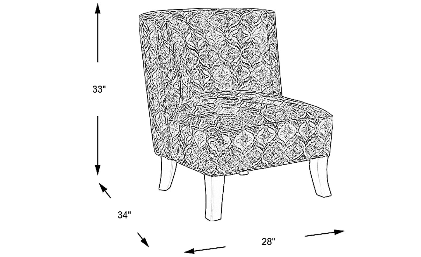 Bold and stylish, the Justine accent chair immediately adds visual interest. An armless design makes it easy to move around, while curved legs bring a sense of quaintness you won't find anywhere else. Ever intriguing, this chair's ogee pattern in denim blue captures true eye appeal. 100% Polyester