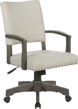 ?Add classic elegance to your home office with our deluxe upholstered Kabasele Chair, with nail head trim, solid wood armrests and cushioned back with attractive double stitch French seam adds tailored details. Firm, yet yielding foam seat reduces pressure on large muscle groups. Adjustable height brings you to exactly the correct level and tilt tension will keep the recline just where you prefer. Our durable 5-star base and contemporary color will add a striking traditional feel to any home office or workspace. Customer assembly is required.