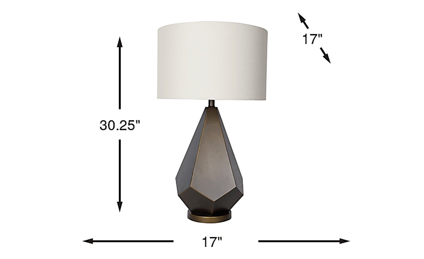 The Kacie lamp adds decorative appeal to any room in your home. A geometric teardrop shape is set on a round base, creating a visually stunning piece that not only adds light to your home but beauty, too. Topped with a hardback drum shade, it can accommodate one 150 watt bulb (not included), with a 3-way switch.