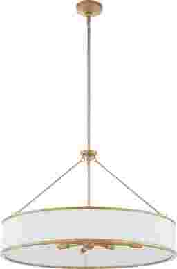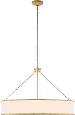 Absolutely. While traditionally styled for dining areas, this 30-inch round pendant is a versatile statement piece for entryways or primary bedrooms. Its 19-inch height makes it substantial enough to act as a visual centerpiece in a foyer, while the fabric drum shade diffuses the glow of its 5 lights, creating a soft, warm ambiance that is ideal for a sanctuary-like bedroom setting.