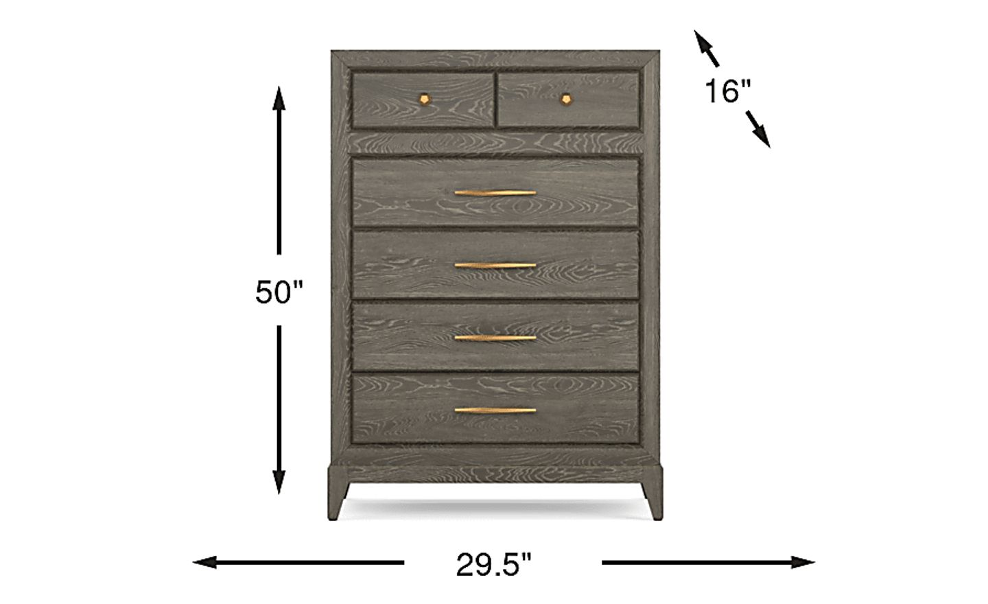 This piece features a thoughtful combination of gold-finished knobs and pulls, offering both a sophisticated contemporary accent and reliable daily functionality. The hardware is designed for a comfortable grip and long-term durability. Additionally, the Cindy Crawford Home brand is known for utilizing quality construction techniques, such as straight-leg stability and high-quality veneers, to ensure the chest stands up to the rigors of daily use.