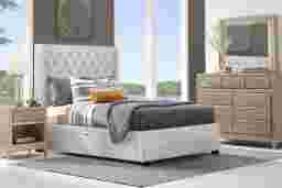 Kailey Park Light Oak Finish 7 Pc Bedroom With Harlow Hill Taupe Queen Upholstered Bed