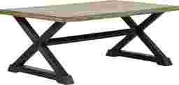 The Kalani cocktail table boasts a relaxed transitional style and slightly washed two-tone light brown and black finish, perfect for blending in to any type of decor. Made of poplar solids and oak veneers, the base features X-shaped legs for a casual feel.
