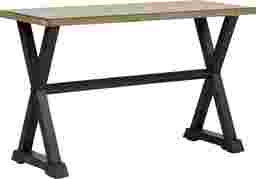The Kalani sofa table boasts a relaxed transitional style and slightly washed two-tone light brown and black finish, perfect for blending in to any type of decor. Made of poplar solids and oak veneers, the base features X-shaped legs for a casual feel.