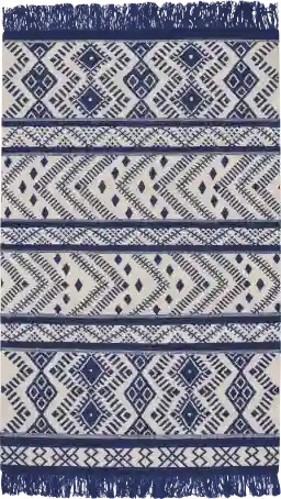 Designed with alternating motifs to create a tapestry of texture and pattern. The Kaloni rug features geometrical patterns in soft blue and taupe. Woven with 100% wool. The rug is reversible for twice the wear. Professional clean only.