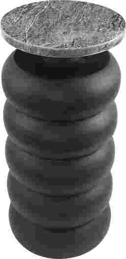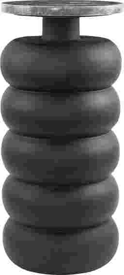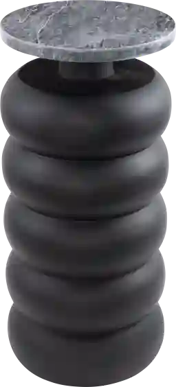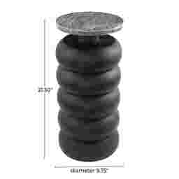 Embrace artistic expression with bold designs, sleek lines, neutral elements, and a minimalist aesthetic. The Kalwa accent table is crafted from high-quality teak wood and features a stunning marble tabletop, providing durability and elegance. This round table features a black finish highlighting its elegant design. It showcases intricate, handmade carvings with a bubble-inspired motif, adding artistic charm and uniqueness.