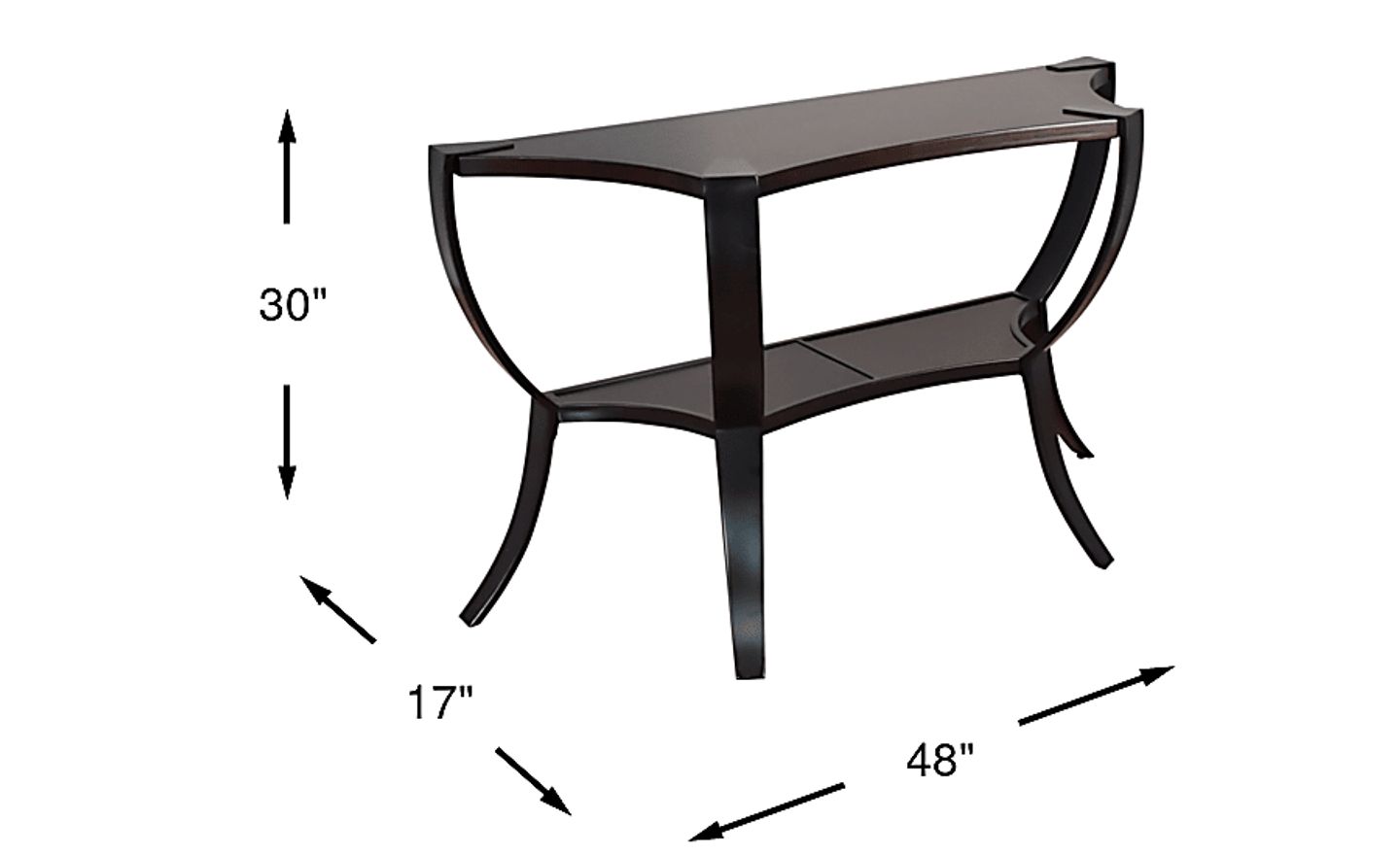 Stately with understated flair, the Kamden sofa table fuses suave artisanship with refined traditional style. This sofa table features a two-tier frame crafted with cherry veneers in a rich godiva finish. The stunning curvature on the metal legs offers a perfect final touch.