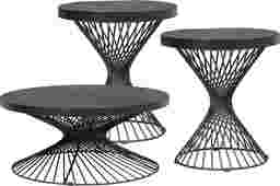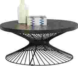 Maintaining a versatile transitional style to fit any home, the Kanister cocktail table imparts a chic industrial design. Crafted of beautifully patterned veneers with a weathered walnut finish, this table features black iron legs with an hourglass shape. The round tabletop offers just enough room for a few items while leaving plenty of space to roam your living room. Customer assembly required.