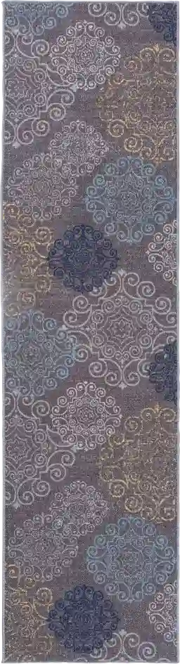 Contemporary with a vintage touch, the unique Karlene rug adds warmth and elegance to any interior space with its motif design and shades of gray, white, blue, and yellow. The looped nylon pile measures a low 0.2" so the rug traps less dirt and is more resistant to wear. Its non-skid backing eliminates the need for a rug pad and is safe for all types of floor. This is the perfect print rug for living room, bedroom, hallway, or wherever you want to add style and comfort.