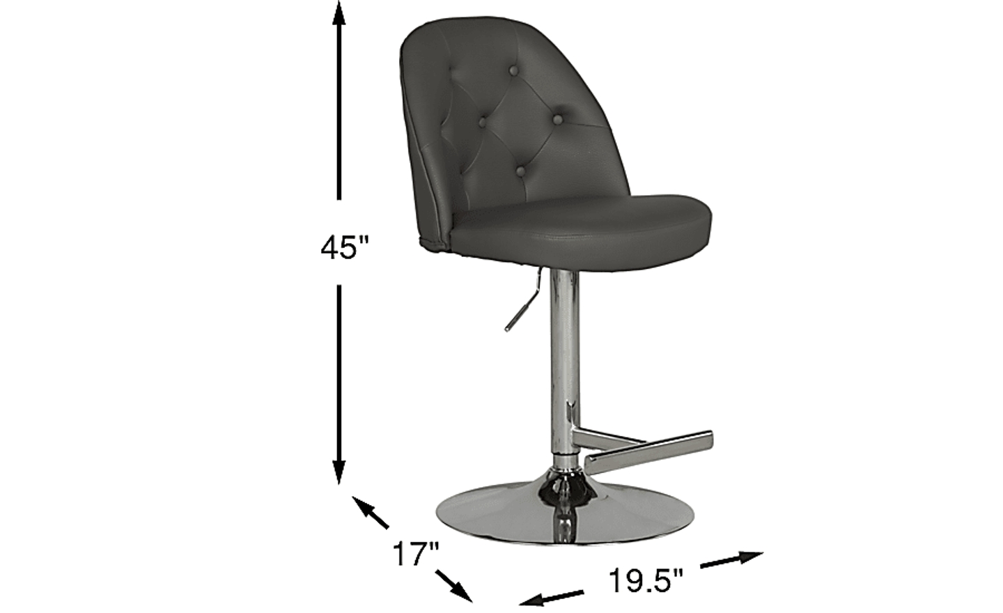 Contemporary style and comfort make its way to your dining area with the Karyn barstool. Upholstered in leather-like fabric in a chic gray color, it features a curved back and button tufting detail. The lever activated stool features an adjustable height gas-lift mechanism allowing you to raise and lower the seat from 23 inches to 31 inches from the floor. A chrome finished base offers support.