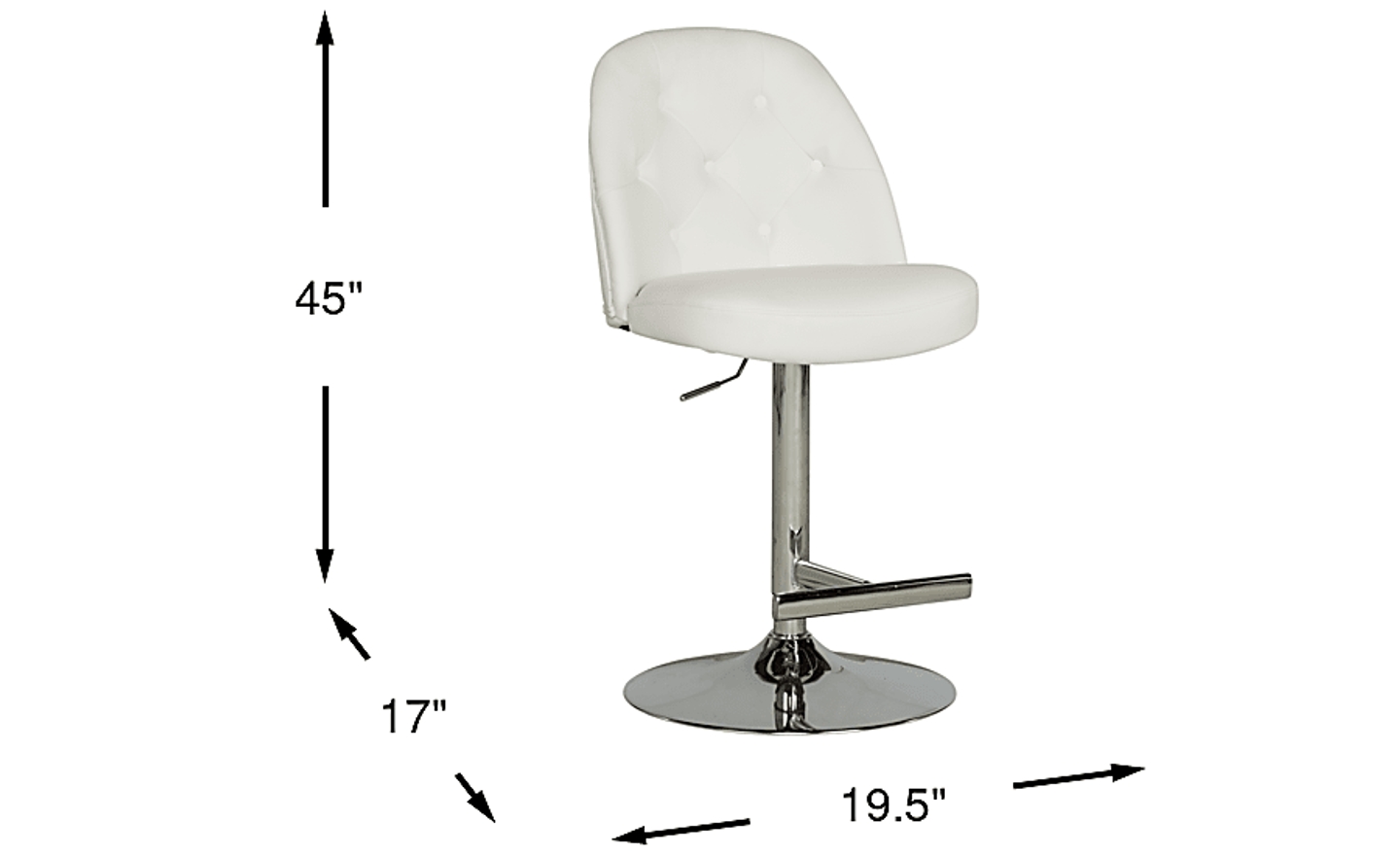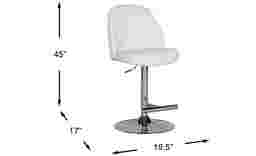 Contemporary style and comfort make its way to your dining area with the Karyn barstool. Upholstered in leather-like fabric in a fresh white color, it features a curved back and button tufting detail. The lever activated stool features an adjustable height swivel gas-lift mechanism allowing you to raise and lower the seat from 23 inches to 31 inches from the floor. A chrome finished base offers support.