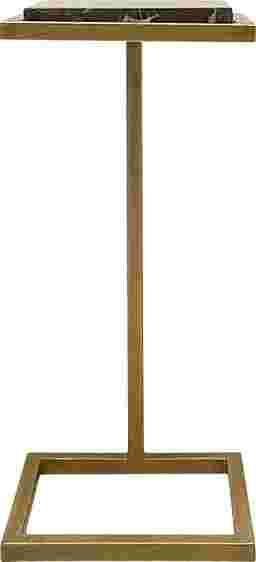 This elegantly designed Kasha martini table will be perfect beside your favorite chair. The iron frame is finished in a lightly antiqued gold, and is topped with a thick piece of brown Emperador polished marble.