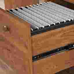 The Kassner desk features file drawer with full extension slides holds letter-size hanging files. Open storage features an adjustable shelf for customizable storage. Finished on all sides for versatile placement in any room of your home. Cord management includes desktop grommet for a tidy workspace. Customer assembly required.