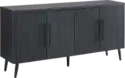 Introducing the Kassy charcoal sideboard, a stunning new addition to the realm of Mid-Century modern design. Crafted from premium manufactured wood, each piece showcases exquisite wood ribbed doors, adding a textured sophistication to your living space. The sleek black metal handles complement the splayed metal legs, creating a harmonious blend of elegance and contemporary flair. The Kassy redefines style and function and seamlessly enhances your homes decor with a touch of modern nostalgia. Customer assembly is required.