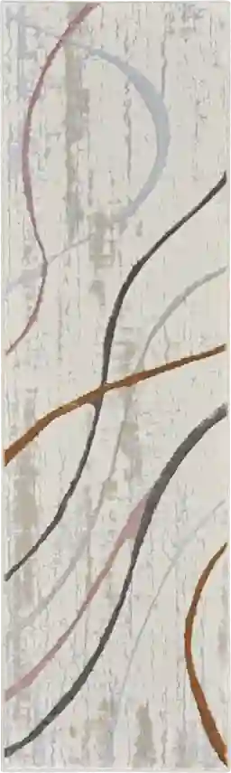 The Kasula Area Rug Collection embodies contemporary style. Art Deco inspired, abstract, and geometric rug patterns are finished with subtly raised accents and a glamorous shimmer that adds a brilliant look to your living room, dining room, or bedroom dcor. Made from softly textured polyester yarns for easy cleaning, Kasula is ideal for use in busy households with kids and pets. With its curvy linear pattern in pink, gold, and blue multicolor on an ivory ground, this abstract rug from the Kasula Collection adds a sense of movement to your dcor. The contemporary design is enhanced with subtly raised accents and a shimmer that beautifully reflects changes in light. Machine-made from polyester yarns that feel comfortably soft underfoot.