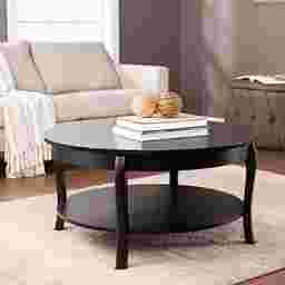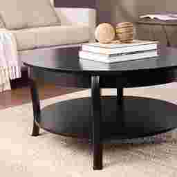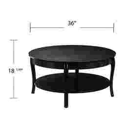 Welcome home sleek style with this Katzmna round black cocktail table. Spacious tabletop offers a clean design, while the lower shelf keeps books and magazines tidy. Center your living room design around display storage with this black coffee table. Customer assembly is required.