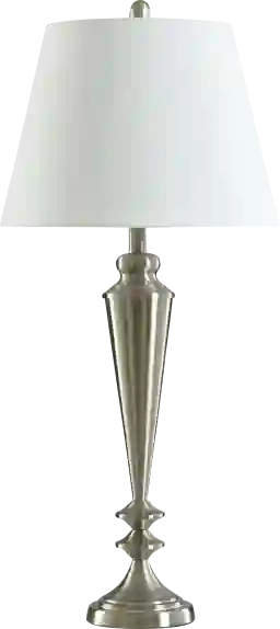 This lamp features a transitional design and a neutral silver finish, making it a versatile accent for a variety of styles. It pairs exceptionally well with cool-toned palettes—such as gray, navy, or charcoal—and complements furniture with metallic hardware or glass accents. Its clean lines allow it to bridge the gap between traditional and modern decor, providing a sophisticated look in both settings.