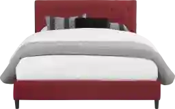 Luxury and value combine on the chic Kaylan bed. This contemporary bed is upholstered in linen-style fabric in a vibrant red color. Tufted details on the headboard add interest while the low footboard and straight lines emphasize the clean aesthetic. The bed comes with slat rolls, so no box spring is needed. Mattress and foundation (if required) sold separately.