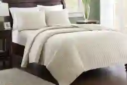 The Keaton king coverlet set allows for the perfect layering piece to your current decor. Made from Microfiber, the light khaki colored coverlet and shams are incredibly soft to the touch and feature pick stitching details within the quilting. A great all-season set that is useable from spring to winter, it adds style and an invitingly soft touch to any bedroom. This coverlet set comes with 1 coverlet and 2 king shams. 100% Polyester Microfiber. Machine wash cold, gentle cycle, and separately. Do not bleach. Tumble dry low, remove promptly. Do not iron. If there is no free movement in the washer or dryer, use large capacity commercial washer/dryer.