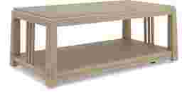 A soothing, relaxing feeling flows throughout the Keaton collection, carried by strong lines and meticulous, eye-catching details. Crafted with oak veneers in a natural finish, this contemporary cocktail table is rich with mission-style accents. The tapered top and flared base create an unmistakable silhouette. Decorative poles on the sides and pronounced joinery at the base adds another touch of authentic craftsman flair. The bottom shelf offers extra space to organize your living room essentials while casters provide easy mobility when needed.