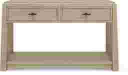 A soothing, relaxing feeling flows throughout the Keaton collection, carried by strong lines and meticulous, eye-catching details. Crafted with oak veneers in a natural finish, this contemporary sofa table is rich with mission-style accents. The tapered top and flared base create an unmistakable silhouette while decorative poles on the sides and pronounced joinery at the base adds another touch of authentic craftsman flair. The durable drawers with English dovetailing are adorned with a black metal bar pulls for a stylish contrasting touch.