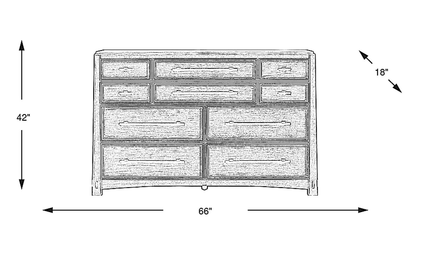 With ten individual drawers, this dresser offers significant organizational utility for a shared bedroom or a large personal wardrobe. The multi-drawer configuration allows you to easily categorize items, from delicate accessories to bulkier folded clothing. At 66 inches wide, it maximizes horizontal storage without a massive footprint, standing at a convenient 42 inches in height.